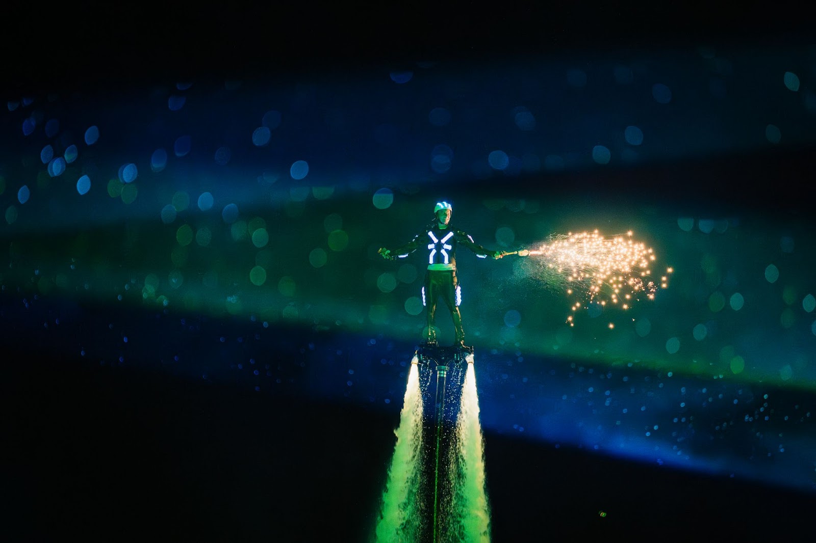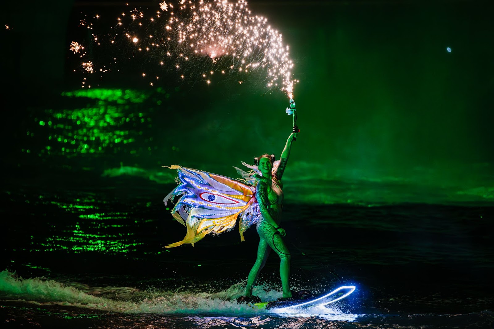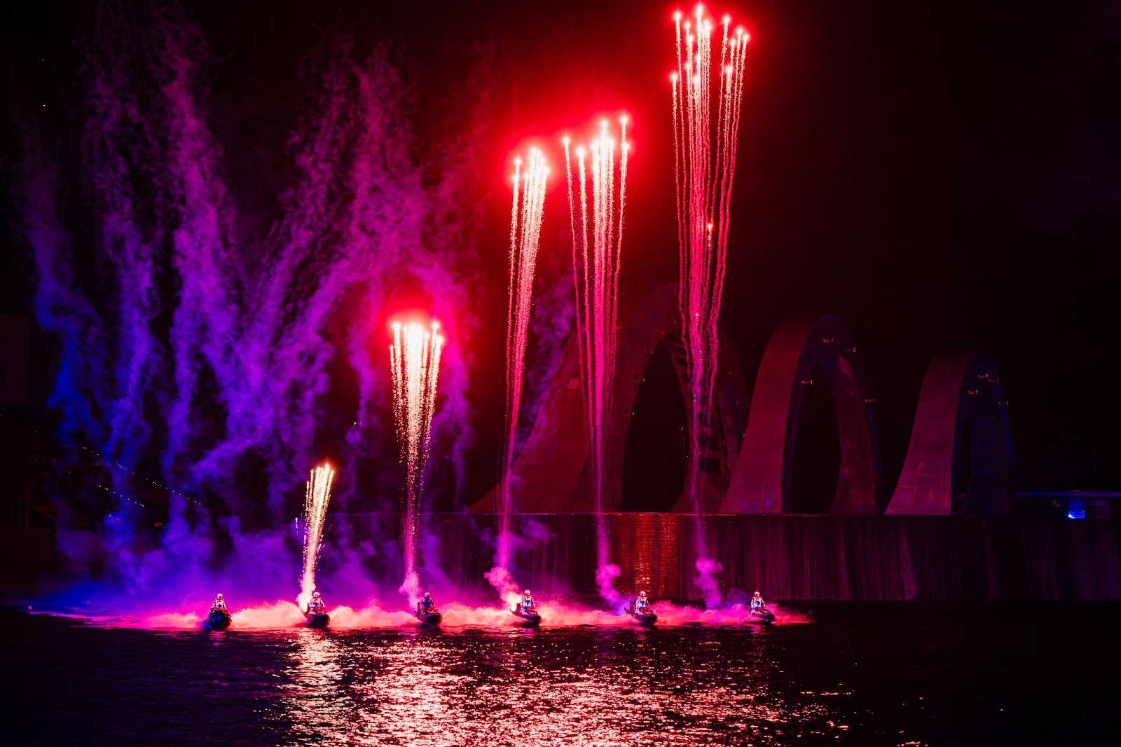 Over 20 minutes, audiences will be immersed in a “galaxy of lights,” with laser and light shaping technology, more than 750 fireworks, and dozens of different effects from water fireworks, flare jets, jetski pyros, and kite pyros.