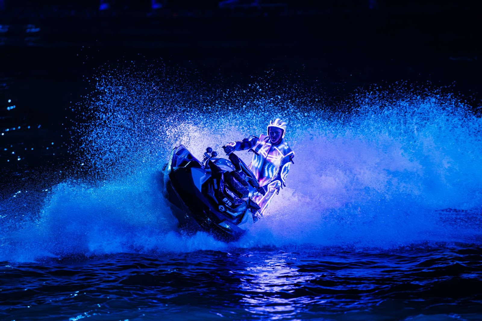 At the Sunset Bay, 21 world-class athletes in jetski, jetsurf, and flyboard sports showcased top-tier techniques in upgraded LED performance costumes. In this year’s upgraded version, all costumes were designed by Bao Rong – a prestigious costume design unit that has collaborated on international events and with major names such as director Zhang Yimou.