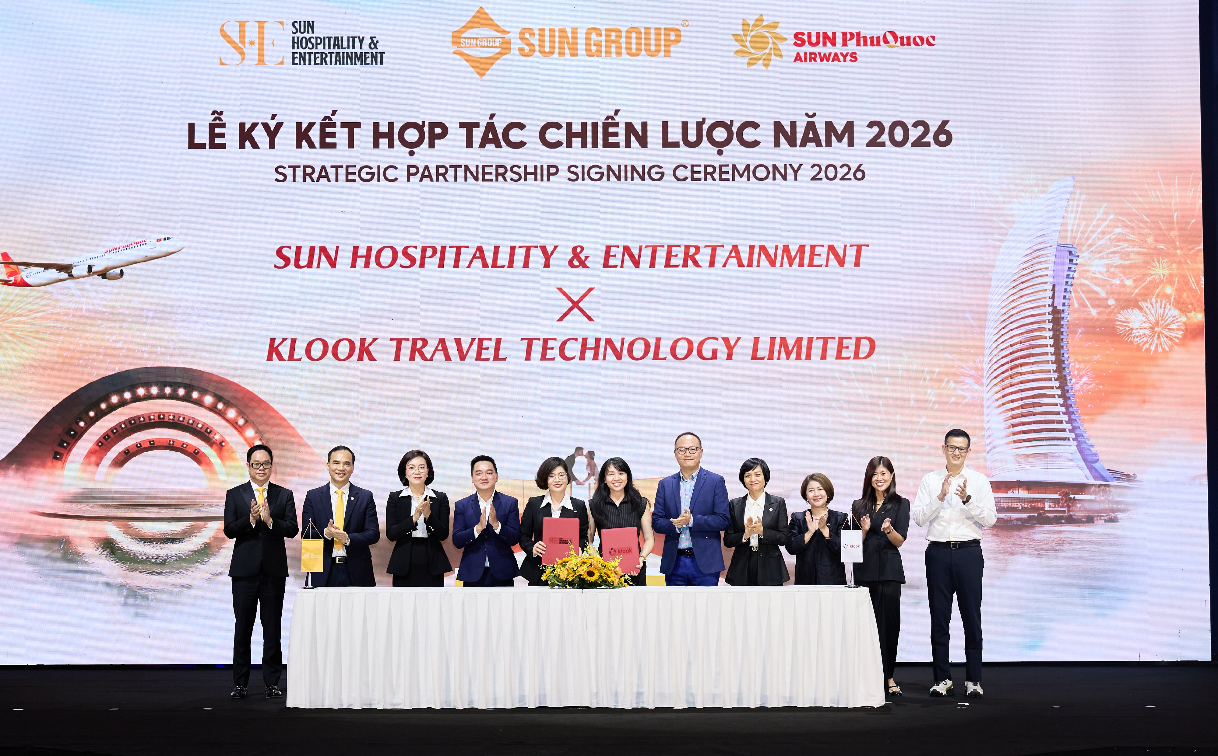 Trong khuôn khổ hội nghị, S.H.E cũng đã tiến hành ký kết biên bản ghi nhớ (MOU) với các đối tác chiến lược KKday, KLook cùng các đối tác đồng hành Trip.com; Hana Tour, Peaktime, EZ Toàn Cầu, Vietravel, Saigontourist, tạo nền tảng mở rộng mạng lưới bán, tăng cường kết nối thị trường và thúc đẩy lượng khách tới các điểm đến của Sun Group, hứa hẹn một năm 2026 cất cánh và vươn cao hơn nữa.
